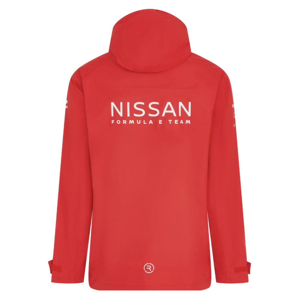 Finished in Nissan Formula E's signature red colourway, this jacket showcases the team's official branding and sponsor logos from the 2025/26 championship season. The sleek, athletic cut mirrors the team's performance-focused aesthetic, whilst practical features include an adjustable hood, secure zip pockets, and elasticated cuffs for a customised fit.